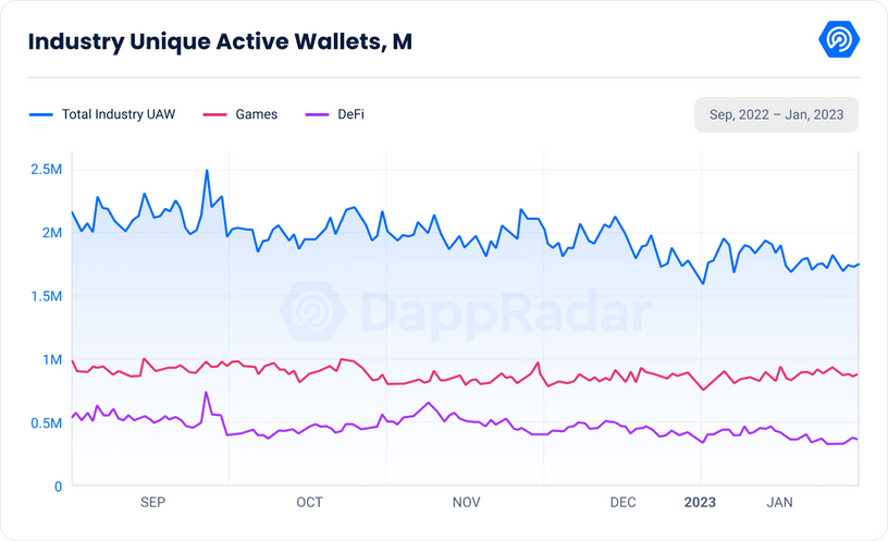 <figure><img src="https://752804635-files.gitbook.io/~/files/v0/b/gitbook-x-prod.appspot.com/o/spaces%2FjGLFTKzhfLc2BF3MM2bu%2Fuploads%2FWEnUk83jsNsAWON50LhK%2Fdappradar.com-game-and-metaverse-tokens-rally-with-strong-on-chain-metrics-industry-unique-active-wallets-m.png?alt=media&#x26;token=bb452607-0c5c-4acd-b0cc-3db6ebf2416a" alt=""><figcaption></figcaption></figure>